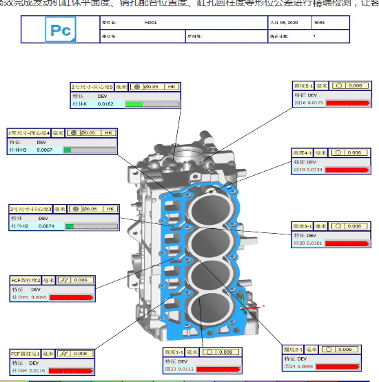 高效完成發動機缸體平面度、銷孔配合位置度、缸孔圓柱度等形位公差進行精確檢測,讓客戶快速又精確的判斷出加工是否合格。