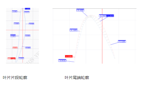 報告可以生成葉片的頭端、尾端、壓力面,吸力面輪廓等數據。