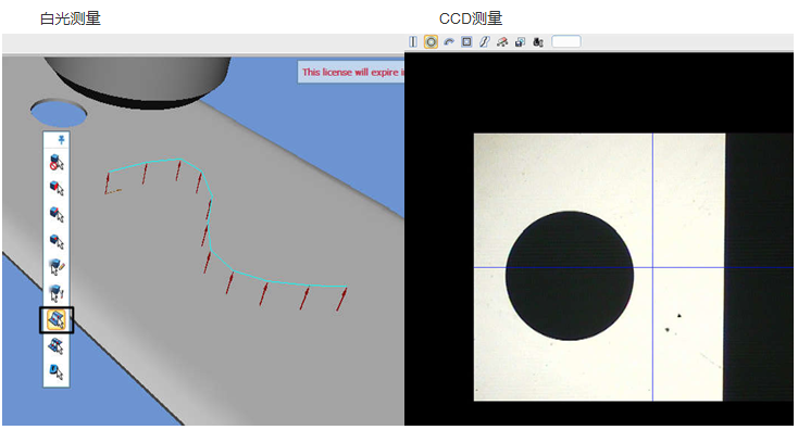 軟件通過光學及圖像處理技術,將視覺與白光技術整合在了一起,多通道并行的數據處理,既能測量工件的3D尺寸輪廓位置,又能兼顧2D 外形尺寸。