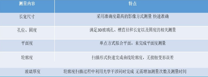 相較于傳統三坐標測量機和單純光學測頭,GLASS 測量機使用CWS白光測頭系統,采用非接觸采點方式,測量全程不產生碰觸,不會造成接觸形變,具備三坐標測量機空間尺寸測量功能,可以準確完成空間尺寸數據的量測(輪廓度等),連續掃描功能,高速掃描能達到1000點/秒,效率高。影像測量系統不僅能夠測量坐標系元素,而且能解決大部分2D尺寸。