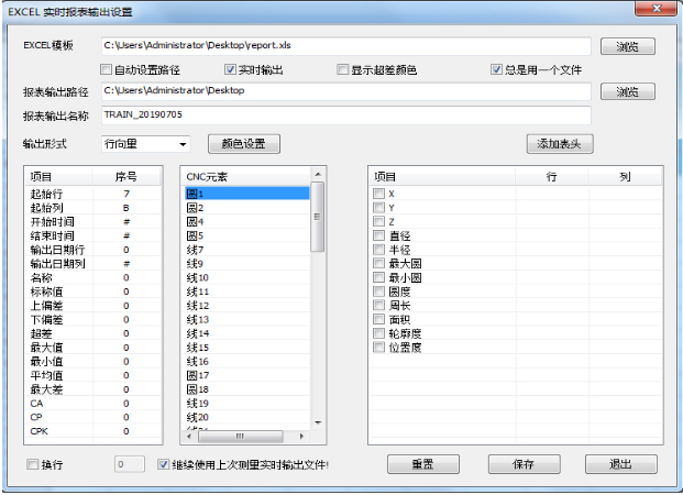 Metus自動輸出報表功能說明:在測量的過程中數據報表直接導入指定的報表模板中,自動進行統計分析。支持Office 辦公軟件:支持微軟 office2003/2007 軟件。可在測量結果視圖鼠標右鍵,在彈出對話框中選擇“實時報表”或在“CNC”視窗中右鍵選擇“實時報表”,彈出“Excel 實時報表輸出設置”對話框,如下圖。
