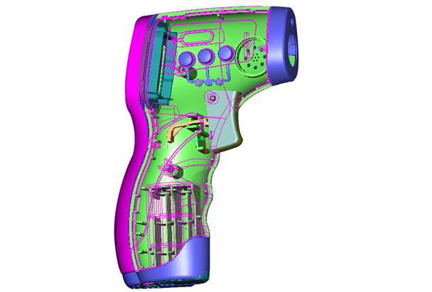 體溫槍由外部殼體及內部溫度傳感器、紅外線精密探頭、探頭鏡片、PCB板等元件構成,內部零件“藏身于”殼體內的各個部位中。殼體的形變及質量是影響客戶購買的主要因素,也是最主要最關鍵的零件。