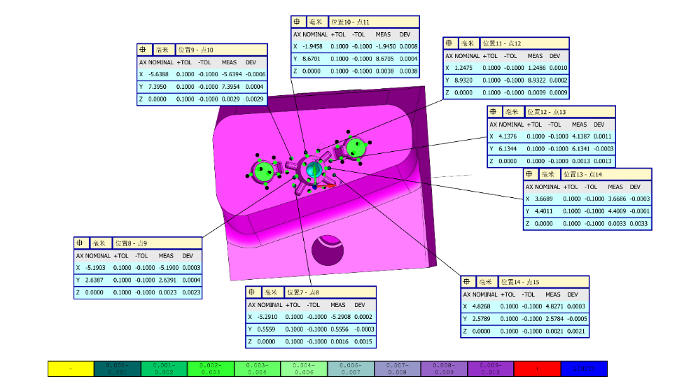 同時,PC-DMIS軟件進行數據處理,能夠快速、高效的完成塑膠產品精度檢測報告,所得出的各種數據,實時在線提供數據反饋,提前分析模具的不良,對模具進行修改或者優化,保證成型后的產品符合客戶要求。